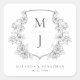 Um elegante adesivo quadrado para o seu casamento mostra uma crista de arte de linha botânica com seu monograma, nomes e data de casamento.