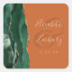 Este elegante e moderno adesivo de casamento apresenta uma esmeralda cor d'água verde agate design com falso brilho dourado. Personalize facilmente o texto dourado em um fundo laranja ou ferrugem queimado, com os nomes da noiva e do noivo em caligrafia branca sobre uma grande e média cinza.