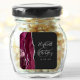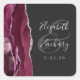 Este autocolante de casamento moderno e elegante apresenta um desenho de geodo de ágata em aguarela burgundy, aparado com brilho de prata falsa. Personalize facilmente o texto cinza prateado num fundo escuro quase preto, com os nomes da noiva e do noivo em caligrafia manuscrita sobre um grande e comercial.