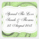 Uma ideia fabulosa para favores de casamento, pequenos potes/caixas de geleia ou mel adicionam estes na moda-etiquetas/adesivos em um lindo preto verde e branco com um padrão suave "Espalhar o amor" personalizado com sua data de casamento e iniciais ou nomes.