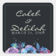 Adesivo Quadrado Casamento Floral Profundo de Azul Roxo-Sangrento