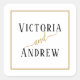Adesivo Quadrado Casamento Mínimo Dourado Escrito Preto Elegante