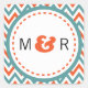 Adesivo Quadrado Casamento Moderno de Teal & Orange Chevron & Loveb
