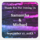 Diga obrigado ao seu convidado de casamento com esses paus ousados. Esses adesivos de casamento modernos listrados de neon apresentam cores brilhantes de rosa e roxo. Junto com o preto, estas cores neonatais formam linhas horizontais através deste adesivo. Personalize a mensagem de apreciação do convidado com os nomes da noiva e do noivo e a data do casamento.