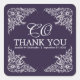 Adesivo Quadrado Casamento Púrpura e Branco Obrigado Monograma