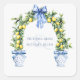 Adicione um toque de charme de eterno aos seus convites de casamento com este adesivo de Casamento maravilhosamente desenhado. Apresentando um arca verde luxuoso adornado com limões vibrantes, enquadrado por pilares clássicos e belos vasos ornamentados azuis, este design complementa perfeitamente a sua celebração elegante. Os detalhes sofisticados e a estética refinada fazem dele um toque de acabamento incrível para selar envelopes, favorecer embalagens ou decor acentos. Uma maneira adorável de amarrar seu tema de casamento com a graça e o estilo!