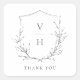 As iniciais monogramadas, enquadradas por uma crista elegante e folhas botânicas ilustradas à mão, a preto e branco, simples e luxuosas. obrigado excelente você favorece adesivos para casamento clássico moderno, casamento formal simples, casamento botânico elegante. Veja todas as peças correspondentes na coleção.