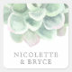 Vinhetas de casamento botânicas com um grande saco verde pastel no topo e seus nomes em uma fonte de cinza macia. O suculente acrescenta um elemento natural excelente ao design. Estes adesivos são uma forma excelente de selar os envelopes aos convites para o casamento, dando-lhes um toque adicional. Estes selos de envelope são perfeitos para um casamento no deserto na primavera ou no verão.
