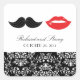 Adesivo Quadrado Casamento tema damasco de bigode vermelho, preto e