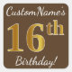 Adesivo Quadrado Castanho, Faux Dourado 16.º Aniversário + Nome Per