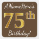 Adesivo Quadrado Castanho, Faux Dourado 75.º Aniversário + Nome Per
