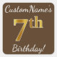 Adesivo Quadrado Castanho, Faux Dourado 7 Aniversário + Nome Person