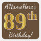 Adesivo Quadrado Castanho, Faux Dourado 89º Aniversário + Nome Pers