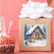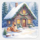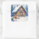 Adesivo Quadrado Caucasian Shepherd Dog Mountain Cabin Christmas