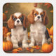 Adesivo Quadrado Cavalier King Charles Spaniel Puppy Autumn Pumpkin