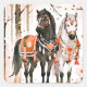 Adesivo Quadrado Cavalos de Aquarela na Folhagem de Outono: Arte de