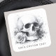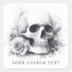 Adesivo com uma pintura em aquarela de uma caveira cercada por rosas, e seu nome ou outro texto personalizado à direita.