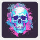 Adesivo Quadrado Caveira Floral no Estilo Vaporwave