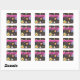 Faça seu próprio adesivo personalizado para uma divertida e na moda 21ª festa de festa de aniversário. Este adesivo coordena com convites correspondentes. Design de arte original colorida de bolos e cupcakes aleatórios de aniversário, a palavra arte "feliz aniversário", balões, velas, galões e pontos em um fundo preto. Uma fita rosa-quente fuchsia é personalizada com um nome e as palavras personalizáveis "aniversário de 21 anos". Fácil de personalizar para outros eventos. Esta arte original é de Phyllis Dobbs para uma festa de aniversário na moda.