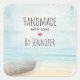 Feita à mão com adesivos de amor com uma bela imagem rústica. Cores sutis de azul claro, marrom arenoso e branco suave. Uma cena de praia com um barco na praia com uma rede de pesca pendurada ao lado. Um olhar elegante.