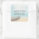 Adesivo Quadrado Cena Costeira de Praia com Barco de Pesca Obrigado