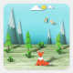 Adesivo Quadrado Cena da Floresta Origami com Montanhas Fox e Aves