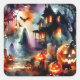 Adesivo Quadrado Cena de Halloween em Aquarela Casa Fantasmas Abóbo