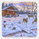 Adesivo Quadrado Cena De Natal Da Cabina De Inverno