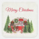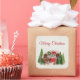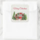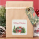 Cartazes de Natal felizes com um tema de Natal bonito e caprichoso. Um trailer aconchegante decorado para o sorteio de Natal entre alguns pinheiros.