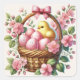 Adesivo Quadrado Cesta de Páscoa Ovos Rosa Pintinho Amarelo