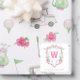 Adesivo Quadrado Cesto do Monograma do Carrinho de Golfe Rosa e Ver