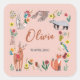 Adesivo Quadrado Chá de Bebê Animais da Floresta Rosa Fofos