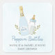 Adesivos Quadrados para Chá de Bebê Menino Azul com Garrafas Estourando. Itens correspondentes em nossa loja de design de festa Cava.