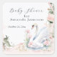 Adesivo Quadrado Chá de Bebê Cisne Elegante Floral Rosa Blush Fita
