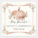 Adesivo Quadrado Chá de Bebê Menina Floral Botânico de Abóbora de O