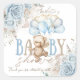 Adesivo Quadrado Chá de Bebê Menino Urso Teddy Boho Azul Floral Pam