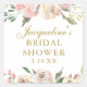 Personalize estes adesivos elegantes para chá de bebê decorados com belas rosas e peônias rosa. Uma adorável adição personalizada para um casamento de primavera ou verão escrita em elegante grafia dourada antiga.