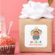 Hola! Este adesivo vem com um bebê bonitinho em uma roupa de poncho mexicana listrada e um chapéu sombrero. Ele está balançando maracas com confete colorido caindo por aí. Personalize com sua mensagem como um adesivo decorativo colorido para favores ao chá de fraldas. O Hola de Texto não é editável.