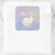 Adesivo Quadrado Chá de fraldas das estrelas e da lua branca Obriga