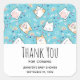 Obrigado de festas que você cola com um padrão de gato giro, colocado sobre um fundo azul e decorado com arco-íris e estampas de pata e muito mais.