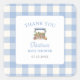 Celebrar a mãe a ser com o nosso obrigado de chá de fraldas de menino criado localmente que você cola. A design apresenta uma fatia de mercado de um fazendeiro de aquarela em um fundo de gingham vermelho, fazer na moda e charmoso. Use as ferramentas de design para personalizar o texto.