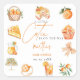 Um adesivo de Chá de fraldas de laranja de Citrus, a mistura perfeita de doce e na moda! Decorado com laranjas vibrantes, verde fresco e alegre inscrição "A Little Cutie Is On Way",