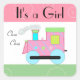 Adesivo Quadrado Chá de fraldas do comboio Choo Rosa