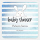 Adesivo Quadrado Chá de fraldas Tan White Bunny Blue Stripe