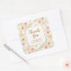 Adesivos elegantes para chá de noiva apresentam uma borda de belas flores de jardim com Obrigada e seus detalhes em letras sofisticadas. ITENS COINCIDENTES em nossa coleção.