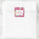 Adesivo Quadrado de Chá de Noiva Elegante Aquarela Floral Rosa Quente.