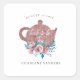 Hora do chá de chá de noiva em lindo rose gold. Bule em um leito de rosas de fantasia em aqua brilhante e rosa rosado. O design de mídia mista combina elegantemente texturas metálicas em rose gold e rosas em aquarela.