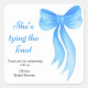Tema de Chá de Noiva com Laço - Adesivo Quadrado de Chá de Noiva Laço Azul Ela Está Casando.