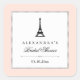 Estes adesivos são o toque perfeito para o seu elegante chá de panela temático de Paris. Apresentando um fundo cor-de-rosa suave, falso quadro prateado, uma imagem da Torre Eiffel e um elegante texto preto.