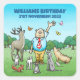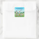 Chamando todos os animais de festa em um adesivo de aniversário quadrado.
